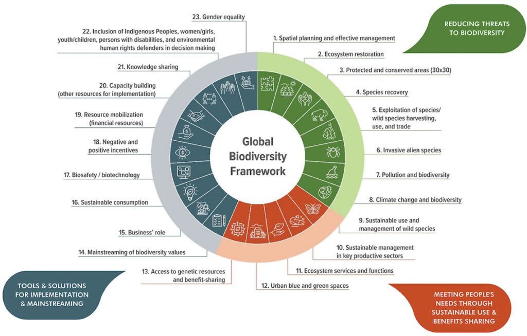 Figure 1 Schematic of the Kunming-Montreal Global Biodiversity Framework goals and targets (source: Government of Canada)