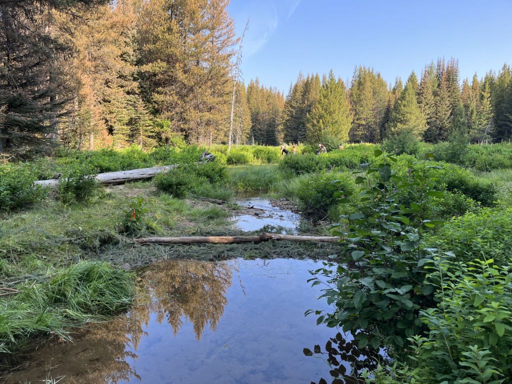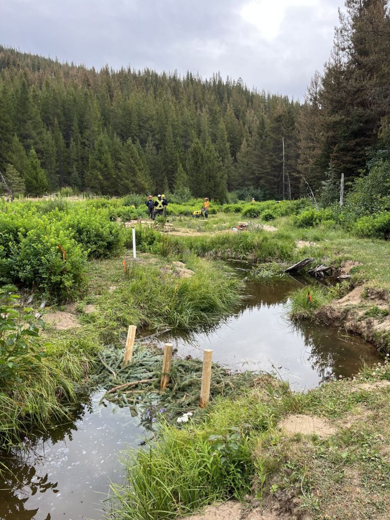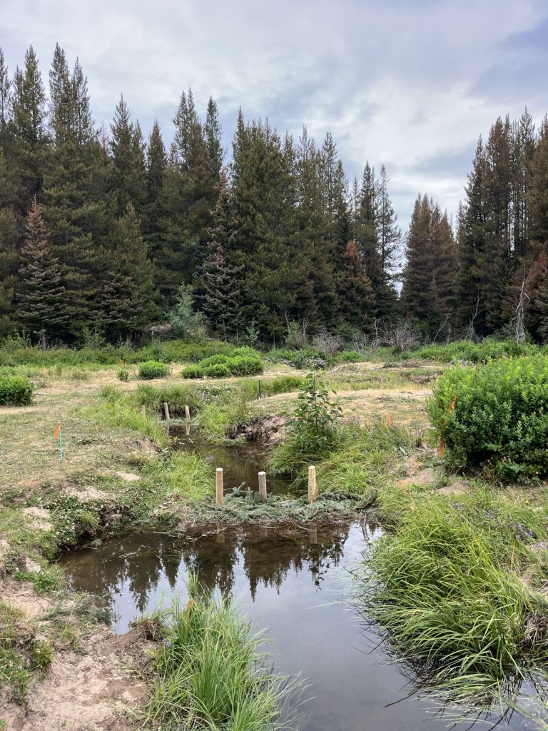 The project started in 2023 and is currently in year two of its three-year timeline. The low technology-based restoration processes that it uses are designed to restore wetlands across BC. Essentially, the team installs human made beaver dams, built of branches, sediment and other materials from the surrounding ecosystem. This nature-based solution is easily built by hand and is low cost, while still providing many benefits for the ecosystem. The inspiration for the design of this project comes from the “Low-tech and Process-based Restoration of Riverscapes Design Manual” out of Utah State University.